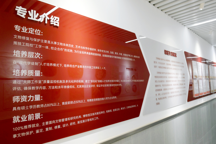 沒有成型的教材,王愛梅等老師就與這些特聘專家和技能大師一起探討,與團(tuán)隊(duì)教師合作搭建課程體系。現(xiàn)已完成10門一體化課程標(biāo)準(zhǔn)和教材、學(xué)材的開發(fā),并打通了中高級(jí)直升人才培養(yǎng)機(jī)制,同時(shí)完成主編《陶瓷器基礎(chǔ)修復(fù)》《陶瓷器文物修復(fù)》,參編《金屬器修復(fù)》等課程資源包。