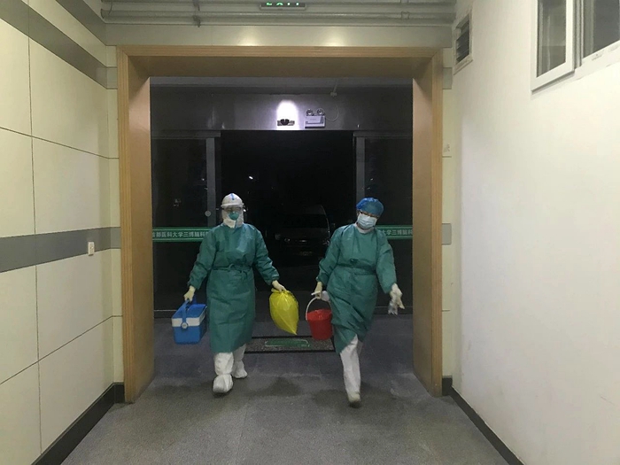 每一天的防控工作緊張而有序。很多時候發熱病人都是四點以后才到醫院就診,她接到通知總是第一時間趕到發熱門診,同接診的醫務人員工作在一起。監督指導醫務人員戴口罩、帽子、護目鏡、手套、穿防護服等,檢查是否防護到位,反復叮嚀護士咽拭子采樣時的注意事項,護士采樣完成后,她目不轉睛地看著她們安全脫完防護用品,合理處理醫療廢物,防止交叉感染的發生。收治留觀患者時,海淀疾控中心收集樣品的時間安排在晚上11點,她陪同護士采集完咽拭子后,主動承擔標本轉運、消毒等工作,等所有工作完成已是次日凌晨。
