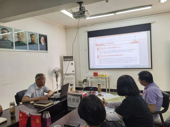 6月22日下午,北化房地產公司黨總支召開全體黨員大會,公司黨總支書記王強以《學習黨史、增強黨性、提高擔當,推動公司可持續健康發展》為題為大家講授專題黨課。