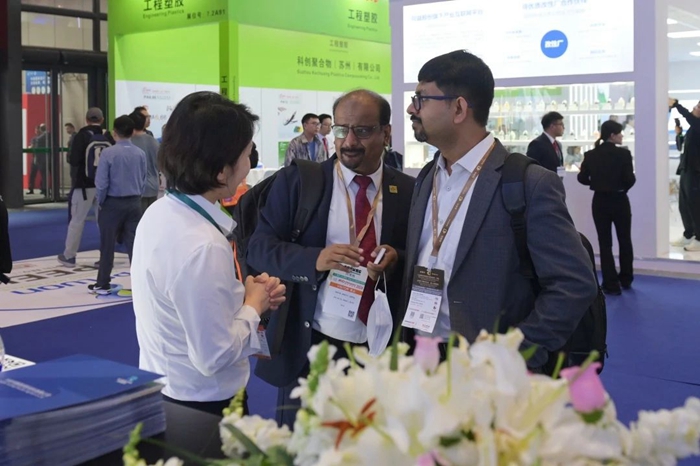 展會期間,中國塑料加工工業協會副理事長王磊光,華騰首研所在余姚融灣新城開發建設管理中心主任、黨組書記周佰勤,雅士展主辦方、北京化工大學有關校領導和北汽研究院等業內專業人士到展位參觀。