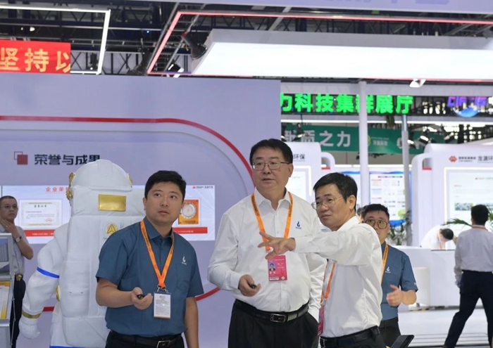 9月13日,北京化工集團領導班子成員和高管人員專程來到集團展臺參觀。黨委書記、董事長陳宇,黨委副書記、董事、總經理楊旭輝一行首先駐足于“北化方案”“北化模式”“北化服務”三個展屏前觀看;隨后參觀了集團科技服務、都市化工、高端制造最新發展成果。陳宇、楊旭輝一行還饒有興致地來到文物修復展區,“北化市集”抖音直播間展區,詢問有關文物修復專業知識、詢問直播銷售情況,當了解到兩個展區都是清一色的90后、00后在現場工作時,陳宇、楊旭輝一行對他們給予高度肯定,并鼓勵他們在“三個北化”引領下,繼續發揮年輕人應有的拼勁、闖勁,為集團發展也為實現個人價值做出新的更大貢獻。