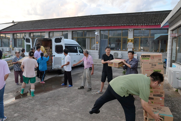 7月30日上午,李東又馬不停蹄地組織人員將北京化工集團(tuán)馳援的物資分發(fā)到村民手中。