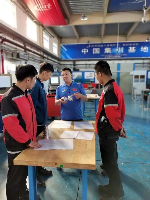 和王展超經(jīng)歷相似,韓方旭,機(jī)電一體化專業(yè)技師畢業(yè)后,也選擇了留校任教,反哺母校教育事業(yè)。他們精心培養(yǎng)的選手殷成浩、謝虎、王帥等,不負(fù)眾望,在世界技能大賽上屢創(chuàng)佳績(jī)。數(shù)控車選手王帥在43屆世界技能大賽中獲優(yōu)勝獎(jiǎng),機(jī)電一體化選手殷成浩、謝虎在45屆世界技能大賽中獲銀牌。他們繼承了導(dǎo)師的衣缽,選擇留校,繼續(xù)培養(yǎng)世賽選手。